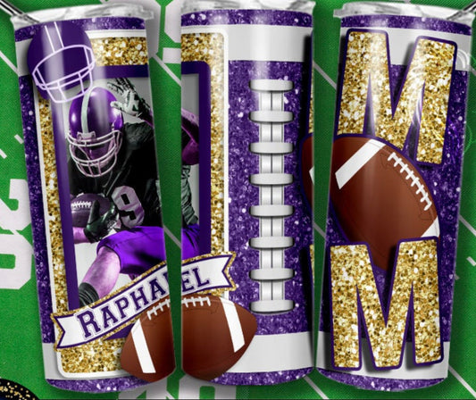 Glitter Football Tumbler w/ Picture